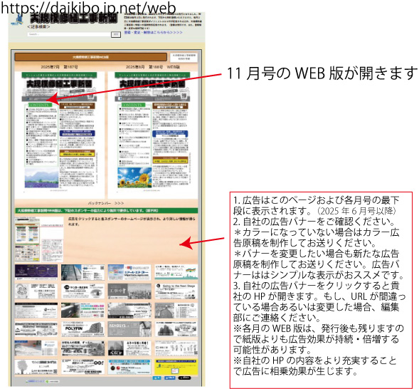 大規模修繕工事新聞は、2025年6月号よりWEB版での発行となりました。WEB版は毎月2日に発行されます。